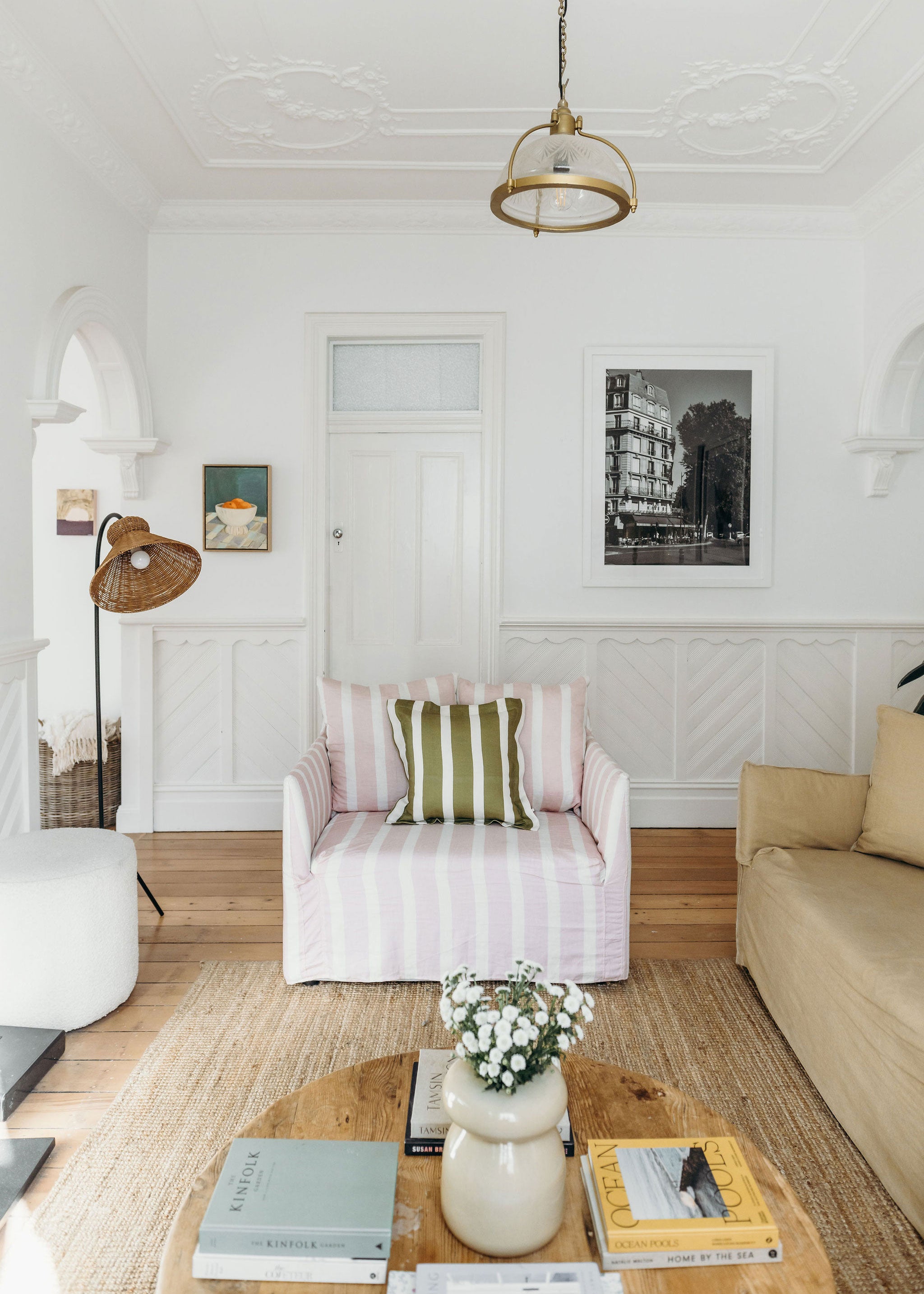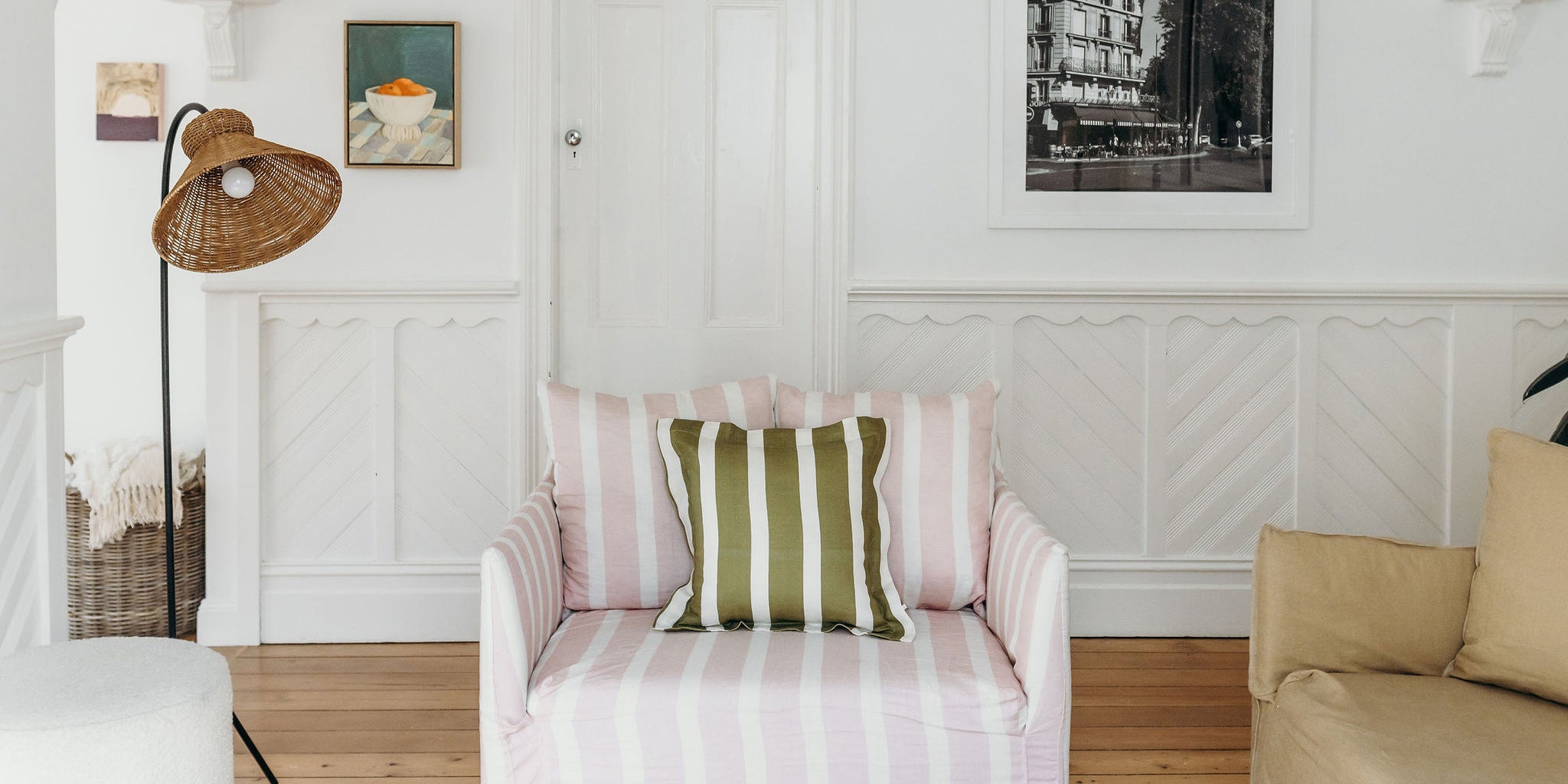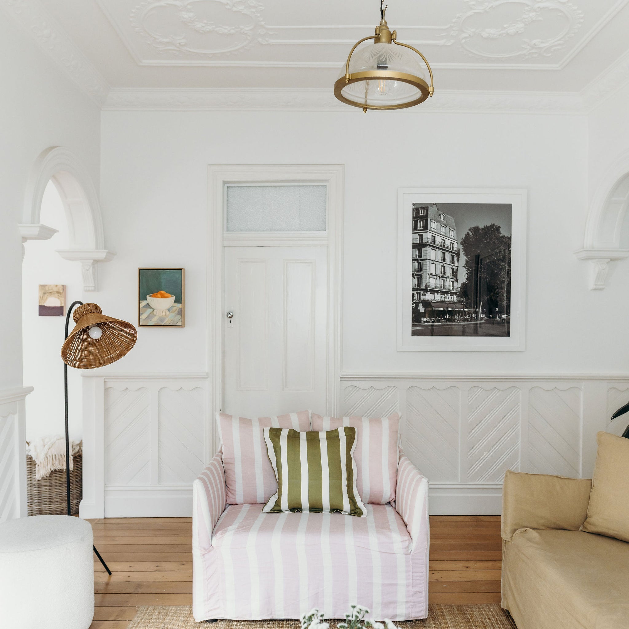 Our Signature Collection fabrics are designed in-house and available to order by the metre — perfect for curtains, upholstery, cushions, and more. Whether you're after a timeless stripe for a small update or looking to create something truly one-of-a-kind, we can help.